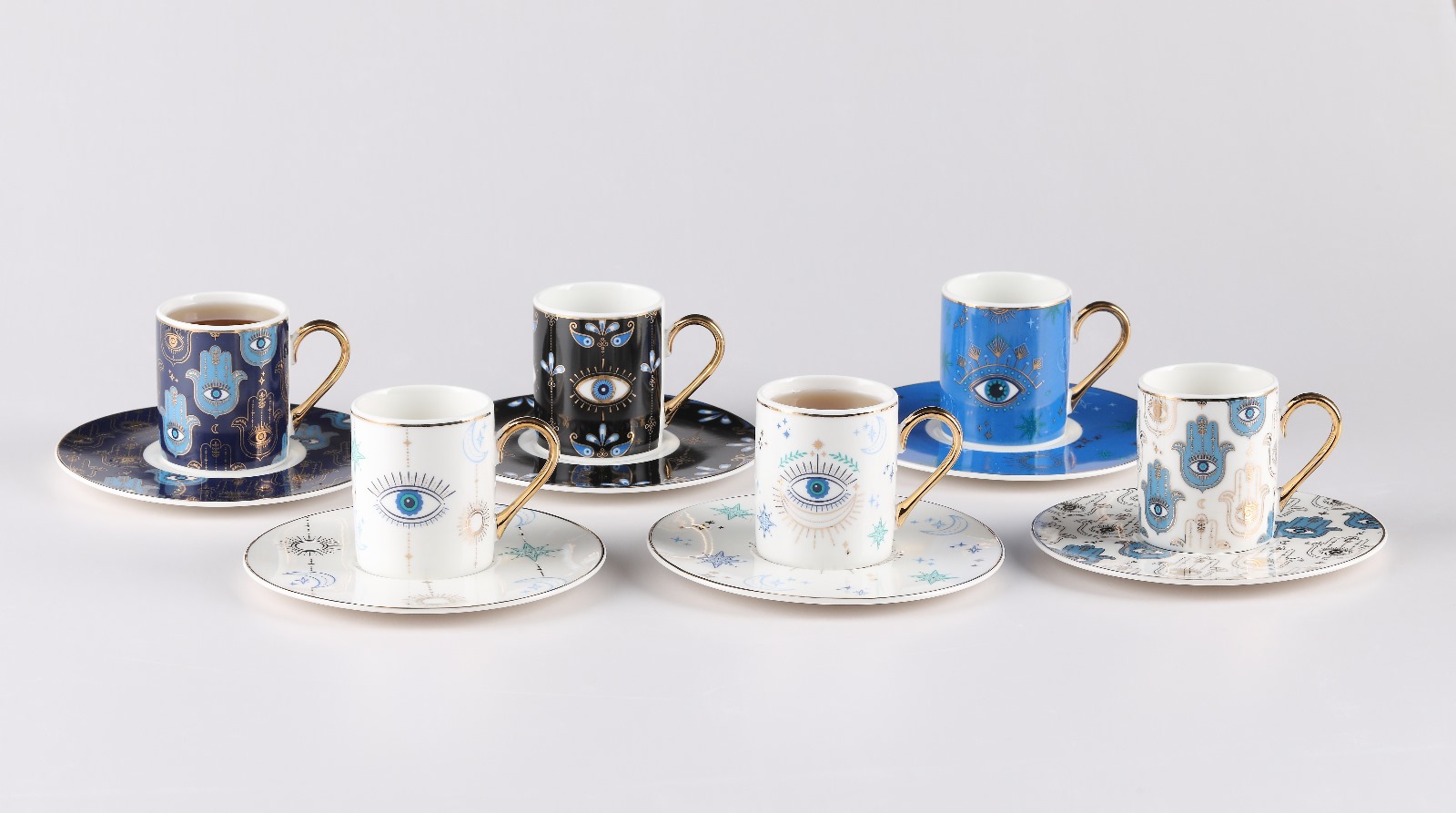 11152 - Tourmaline, 12 Parça, Porselen, Bereket, Nazar, Astrolojik, Modern Tarz, Kahve Fincan Seti ;